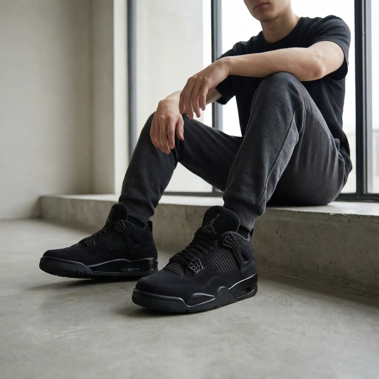 Nike Air Jordan 4 Retro Black Cat donosi prepoznatljivu Jordan 4 siluetu u potpuno crnoj varijanti koja naglašava čiste linije i snažan karakter modela. Monohromatski izgled i robusna forma čine ovu patiku diskretnom, ali izrazito upečatljivom.