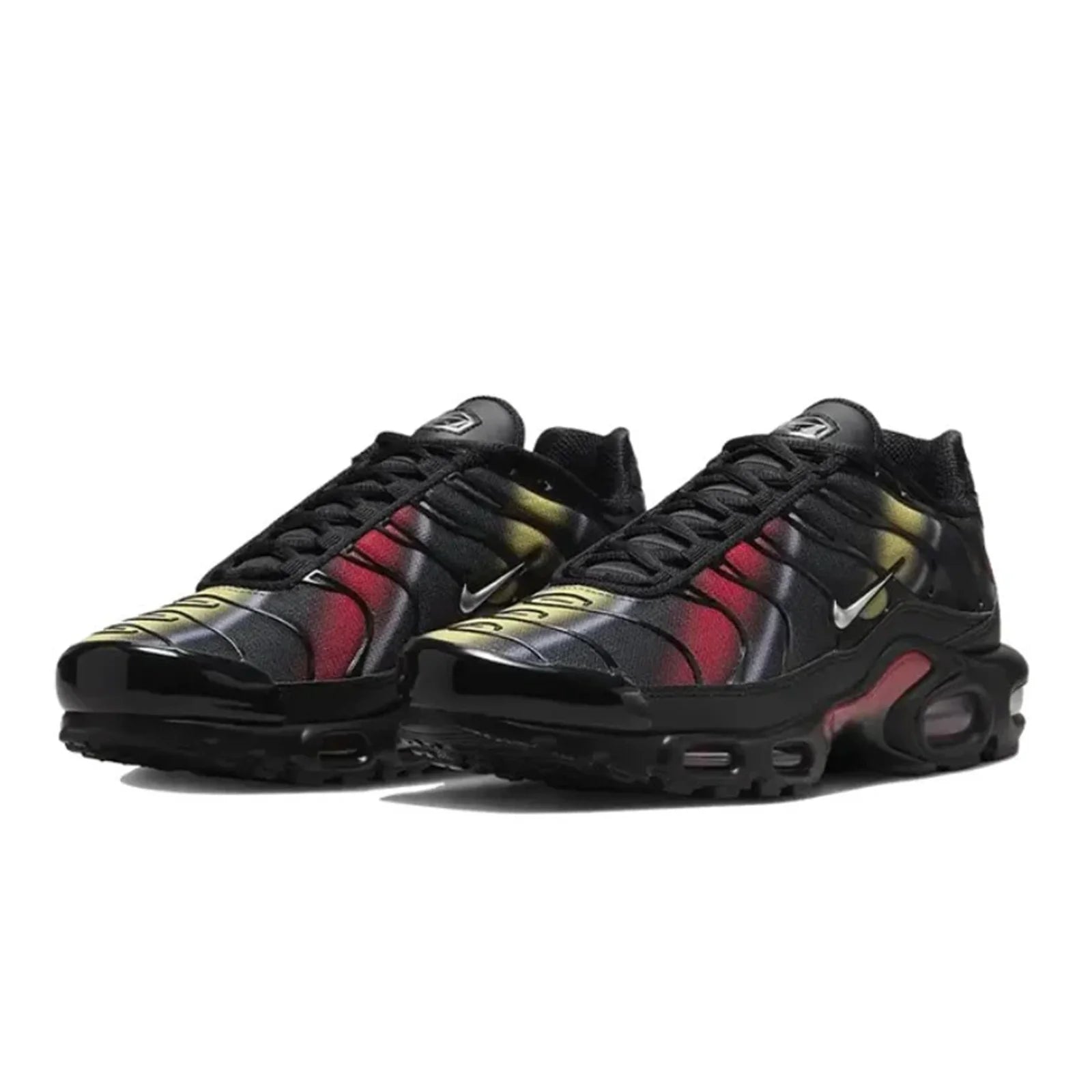 Nike Air Max Plus TN Orbit kombinuje crnu bazu sa dinamičnim crveno-žutim akcentima koji podsećaju na kosmički sjaj. Tamna osnova dodatno naglašava kontrastne tonove i agresivnu TN siluetu.